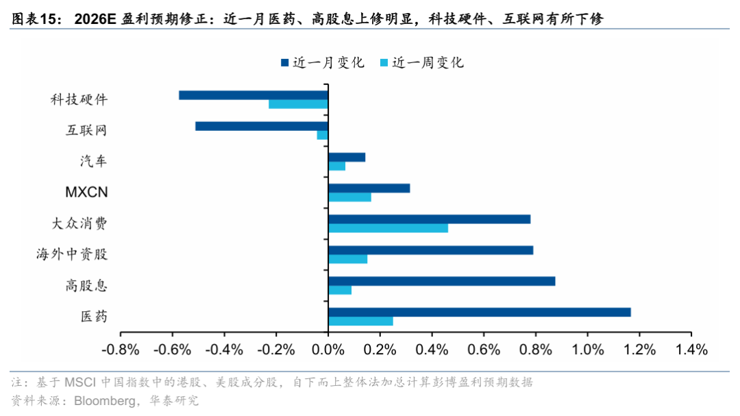 短期关注:1)内外龙头财报及产业进展均指向景气上行的AI链。格局更清晰、受益确定性更强的半导体代工等环节持续性或占优,软件阶段性弹性或更大。2)指数反弹中超额收益承压,但预期基本面边际改善或仍处于上行周期的特色消费、创新药等,筛选绩优龙头,业绩期前后可博弈空头回补。中期视角,继续超配资源品(回调企稳后可适度吸筹)、保险、香港本地股。