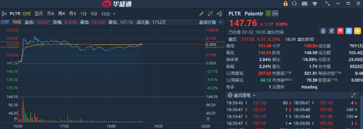 消息公布后,该股盘后交易时段一度暴涨约8%。此前其股价已从去年11月的高点下挫29%,2026年开年至收盘累计下跌17%。尽管如此,该股市盈率仍高达约141倍,位居标普500指数成分股前列。截至发稿,该股盘前上涨5.6%。