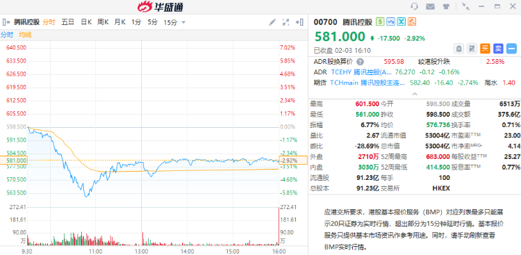 截至收盘,腾讯日内成交超375亿港元,约为过去20个交易日平均成交额的超2.5倍。