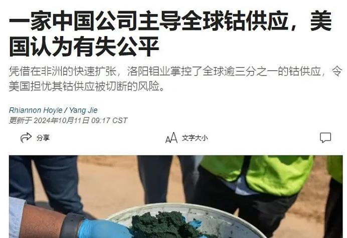 甚至还引起美国官方的注意。2024年,华尔街日报直接点名于泳,酸溜溜的说:“一家中国公司主导全球钴供应,美国认为有失公平。”美国官方报告也警告称,全球钴供应已经高度集中在中国商人手中。