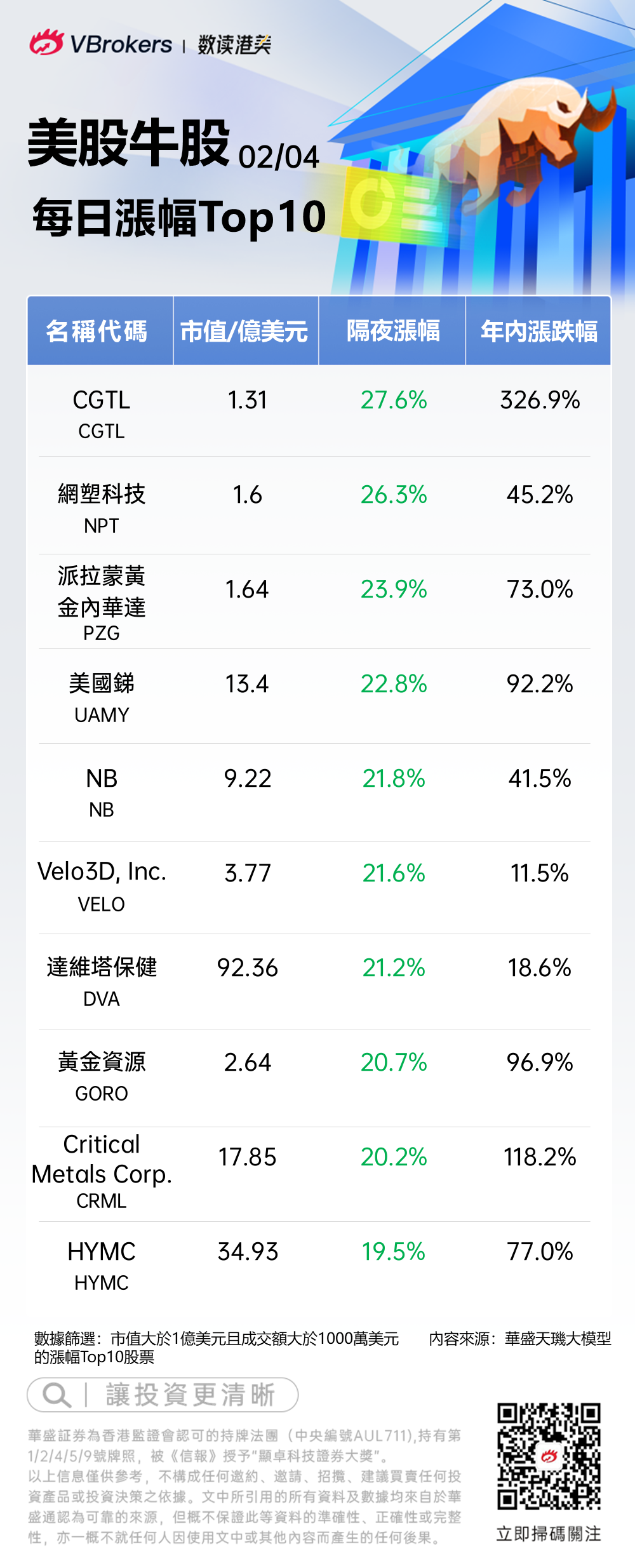 编者按:《美股牛股》栏目旨在追踪每日美股市场涨幅TOP10牛股,紧抓涨势迅猛的个股,助力投资者快速把握美股交易机会。