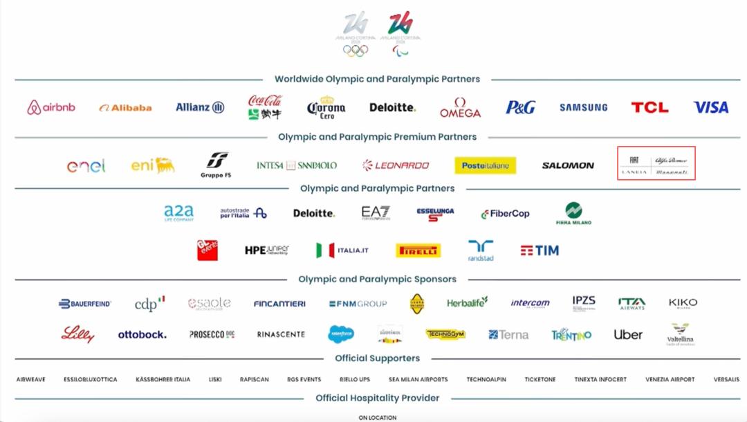 其实,去年3月出现过一则相关新闻——世界第三大车企Stellantis集团加入冬奥组委的赞助名单之中,成为汽车品类的高级合作伙伴,只是当时中国媒体并未广泛报道。Stellantis集团由标致雪铁龙和菲亚特-克莱斯勒合并而成,旗下拥有菲亚特、Jeep、玛莎拉蒂、标致、雪铁龙等14个品牌。赞助米兰冬奥会后,Stellantis集团旗下的阿尔法-罗密欧、菲亚特、蓝旗亚、玛莎拉蒂这四个原汁原味的意大利品牌将是营销的主角。