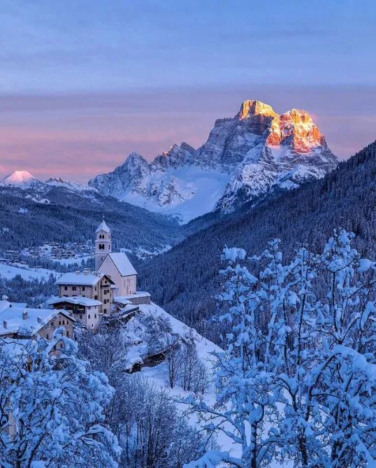 多洛米蒂山脉特有的自然现象——“玫瑰光”(enrosadira)。