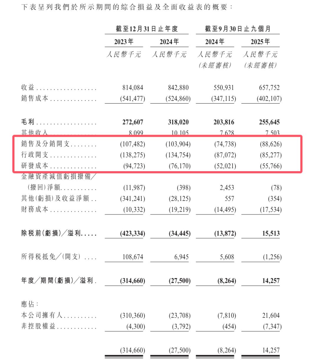 从经营投入来看,公司虽近三年毛利率稳定在38%左右,但为推进全产业链布局、加速市场拓展,在研发、销售及管理端持续加大资金投入,相关支出规模居高不下。