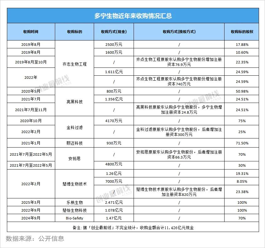 多宁生物的收并购布局自2016年王猛入主后全面落地,成为其搭建生物工艺全产业链的核心抓手。