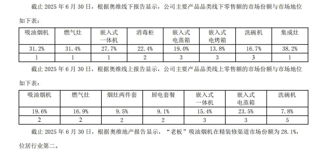 而在一体机、洗碗机、嵌入式电烤箱等新式高端品类上,老板电器的排名差距有限,但市场份额却可能天差地别。