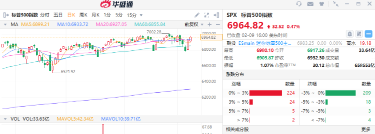 截至收盘,道琼斯指数涨0.04%,报50,135.87点;标普500指数涨0.47%,报6,964.82点;纳斯达克指数涨0.90%,报23,238.67点。