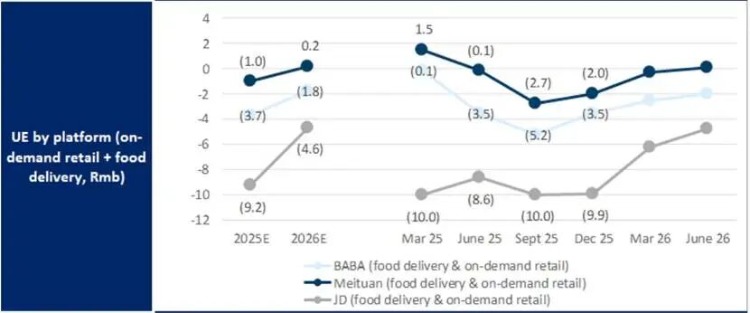 图:高盛对淘宝闪购、美团、京东UE模型的预测,来源:高盛研报