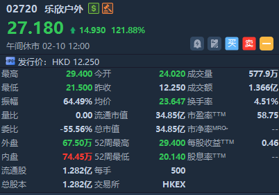 今日两只新股上市,乐欣户外涨超121%,爱芯元智涨近1%。