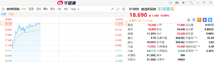 建滔系盘中持续走高,截至发稿,建滔积层板涨近11%,建滔集团涨近4%。