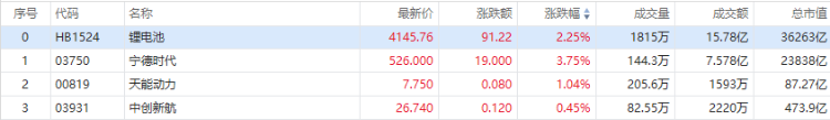财联社2月12日讯(编辑 胡家荣)今日港股锂电池板块今日表现活跃。截至发稿,宁德时代涨超3%,天能动力涨超1%,中创新航微涨0.45%。