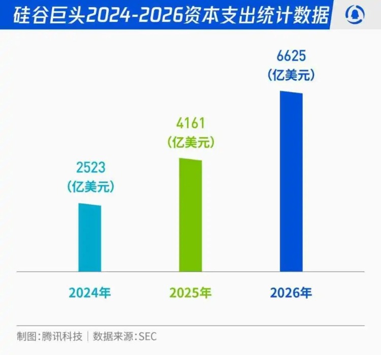 以亚马逊、谷歌、微软和Meta为首的“四大云巨头”,2026年的资本支出,有可能历史性地冲破6500亿美元。