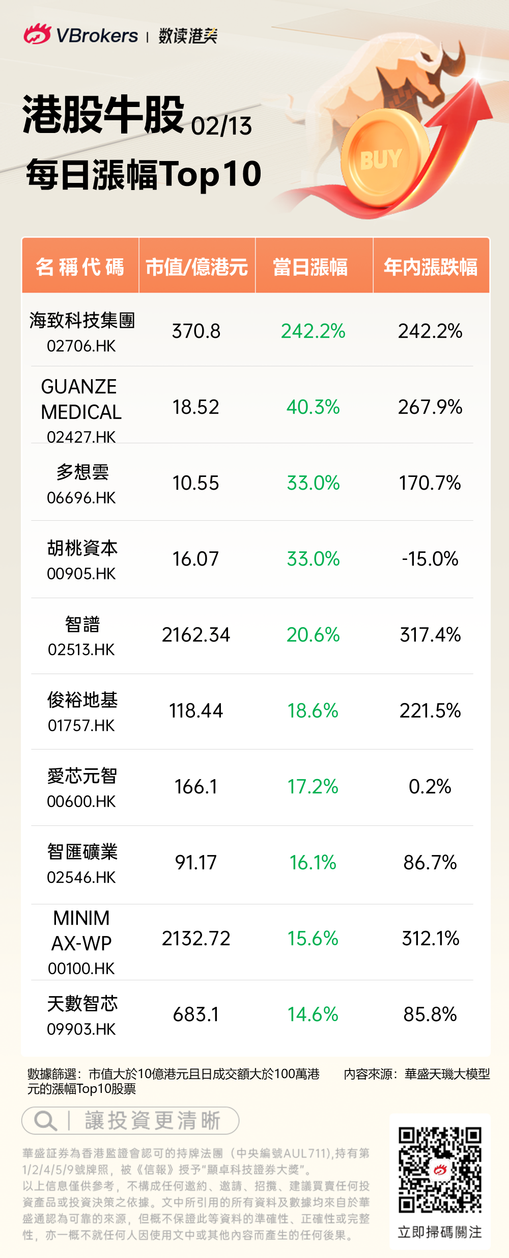 發仔统计了每日港股涨幅Top10,具体名单如下: