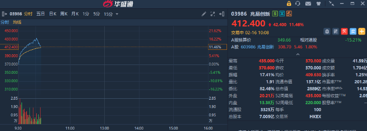 华盛资讯2月16日讯,兆易创新一度涨近17%,现涨约11%,创上市以来新高。