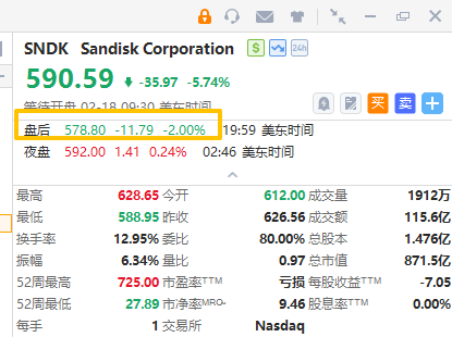 美东时间2月17日,美国存储芯片巨头—闪迪(SanDisk)股价大幅跳水,一度大跌6%,在美股盘后交易中,其股价继续走低,大跌2%。消息面上,西部数据宣布,将出售其所持有的闪迪全部普通股,交易规模约30.9亿美元(约合人民币213亿元)。这或是这家硬盘制造商在分拆一年后彻底退出前子公司的最后一步。