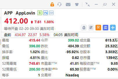 Applovin $APP 盘前大涨5%;传OpenAI拟与其展开合作,通过广告实现商业化;