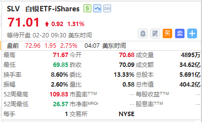 白银ETF $SLV 涨近3%,现货白银日内涨超2%重回80美元上方。