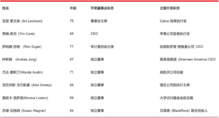 从结构上看,苹果董事会延续了以资深成员为主的构成特征,多数董事拥有跨国企业或大型机构的管理经验,涵盖科技、消费品牌、生物医药、国防航天及金融投资等领域。独立董事占多数,维持了董事会在公司治理与监督层面的独立性安排。