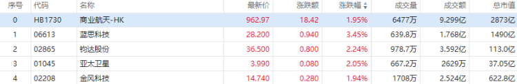 商业航天概念午后涨幅扩大,截至发稿,蓝思科技涨超3%,钧达股份、亚太卫星涨超2%,金风科技涨近2%。