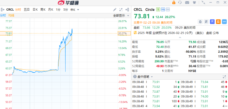 稳定币巨头Circle绩后暴涨20%;加密货币股集体走高,Coinbase涨超5%,Strategy涨超4%,Robinhood $HOOD 涨超2%。