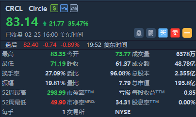受此提振,Circle股价飙涨超35%,加密货币概念股也被带动走高,Circle合作伙伴Coinbase涨超13%,Strategy涨超8%,Robinhood涨超5%。