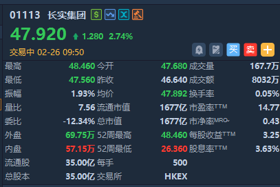 消息面上,长和系旗下三间公司宣布出售英国电网业务权益予法国公用事业企业Engie,套现逾1100亿港元。长和2月26日发布的公告指出,旗下长江基建集团、电能实业及长实集团分别作价443亿港元、443亿港元及221.5亿港元向法国公用事业企业Engie出售持有UK Power Networks的40%、40%及20%权益。三家公司指出,出售UK Power Networks股权,可以获得庞大会计收益及取得的现金款项作日后投资及收购用途。
