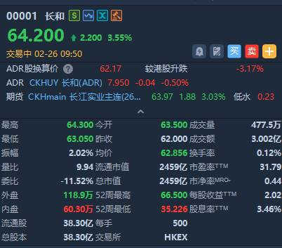 长和系集体上扬,截至发稿,长和涨超3%,长实集团涨近3%;长江基建集团、电能实业涨超2%。