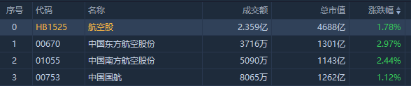 智通财经APP获悉,航空股全线走高,截至发稿,东方航空涨近3%,南方航空涨超2%,中国国航涨超1%。