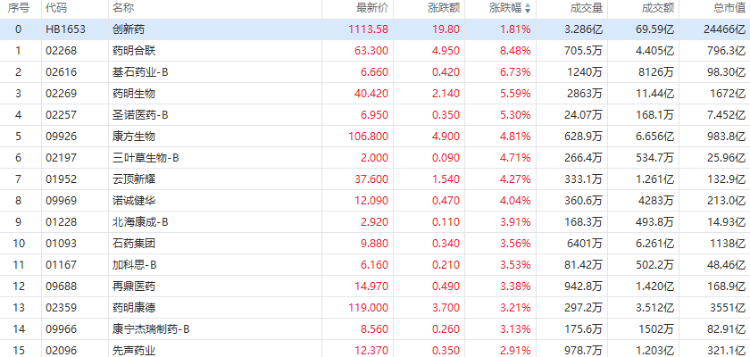 随着近期多只生物医药股靓丽业绩放榜,今日港股创新药概念也再度活跃。