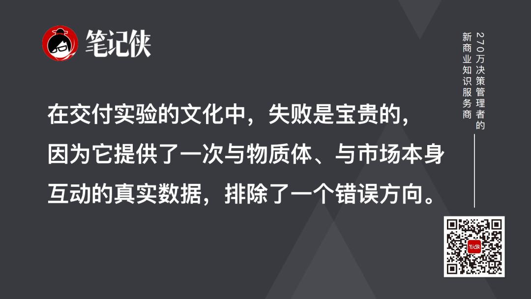 在交付实验的文化中,失败是宝贵的,因为它提供了一次与物质体、与市场本身互动的真实数据,排除了一个错误方向。