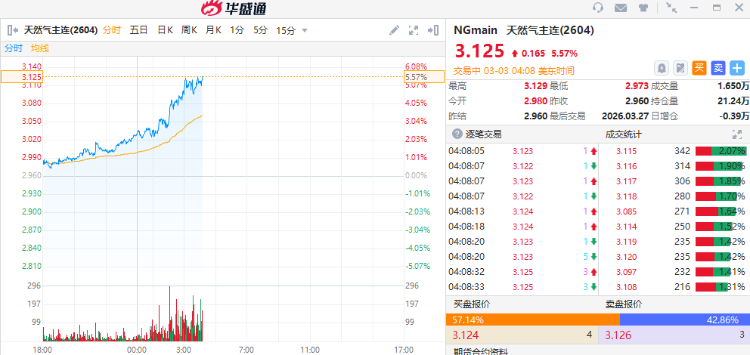 消息面上,天然气期货价格持续拉升,现涨超5%。此前,卡塔尔能源公司宣布,由于公司旗下两处能源设施当天遭到来自伊朗的无人机袭击,决定暂停生产液化天然气。卡塔尔天然气储量居全球第三,是全球最重要的天然气生产国之一。2025年,卡塔尔出口了8220万吨液化天然气。公开资料显示,大众公用目前主营业务主要涵盖城市燃气、环境市政、金融创投三大块。