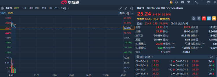 美股油气板块逆势走高,Battalion $BATL 一度大涨逾50%,现涨约36%。