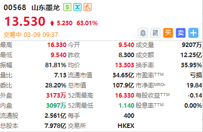 华盛资讯3月9日讯,港股油气、燃气股盘初逆势大涨!山东墨龙飙涨超63%,百勤油服涨超38%,大众公用涨近24%,中石化油服涨超23%。此外,“三桶油”也录得不同程度的涨幅,中国海洋石油涨超6%,中国石油股份涨超5%,中国石油化工股份跌超3%。