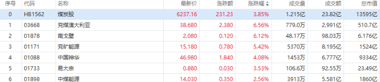 煤炭股逆市走高,截至发稿,兖煤澳大利亚、南戈壁涨超6%,兖矿能源涨超5%,中国神华涨超4%,中煤能源涨超2%。