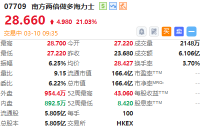 华盛资讯3月10日讯,港股存储、芯片概念大幅高开!南方两倍做多海力士大涨超21%,南方两倍做多三星涨近16%,天数智芯涨近15%,澜起科技涨近10%,壁仞科技涨超5%,兆易创新涨超4%,华虹半导体涨超2%。