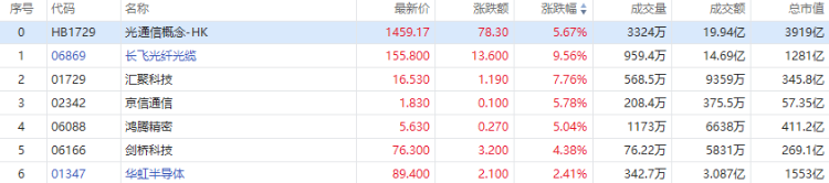 华盛资讯3月10日讯,港股光通信概念股再起升势!长飞光纤光缆涨近10%,汇聚科技涨近8%,鸿腾精密涨超5%,剑桥科技涨超4%。