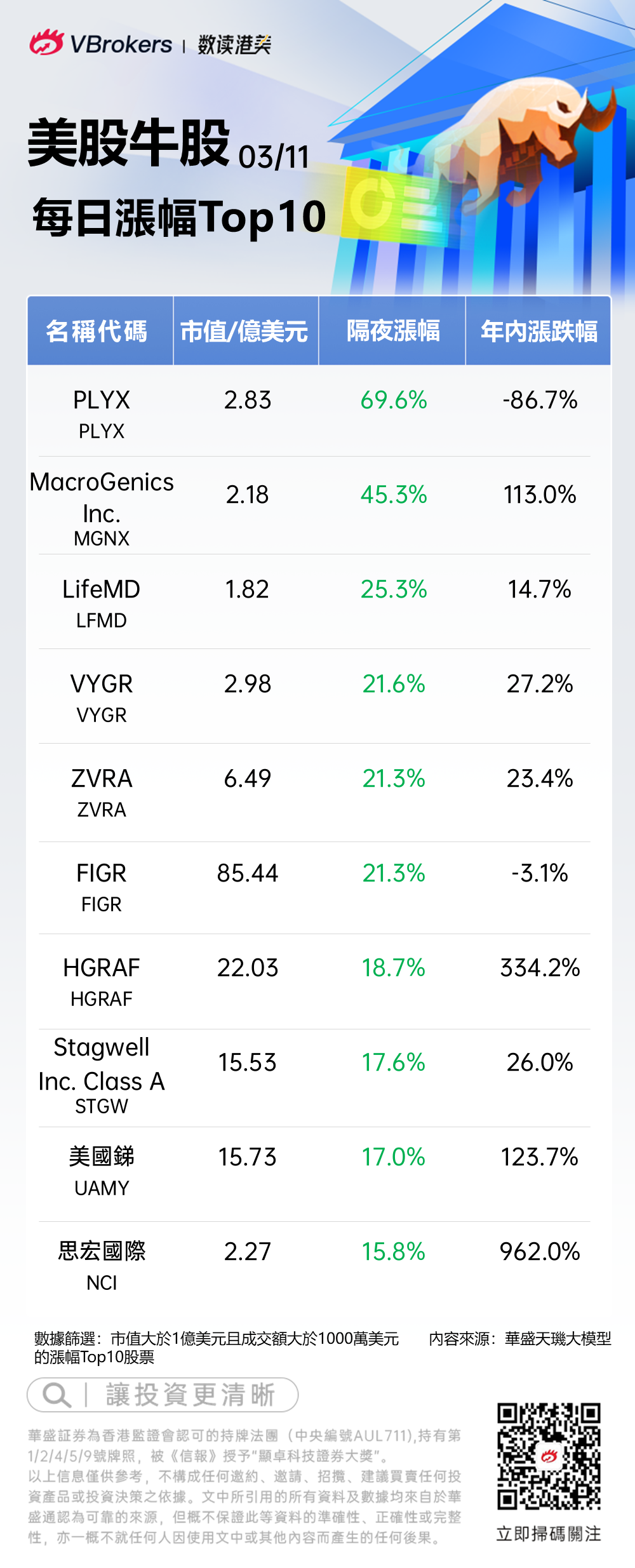 编者按:《美股牛股》栏目旨在追踪每日美股市场涨幅TOP10牛股,紧抓涨势迅猛的个股,助力投资者快速把握美股交易机会。