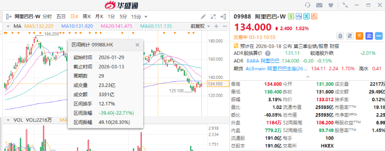 花旗维持阿里巴巴-W“买入”评级,目标价195港元。该行预计客户管理收入同比预计增长 2.7%,云计算收入同比增长 35%;经调整息税折旧摊销前利润预计为 277 亿元,电商业务经调整息税折旧摊销前利润为 374 亿元,对应淘宝闪购业务当季亏损约 230 亿元。