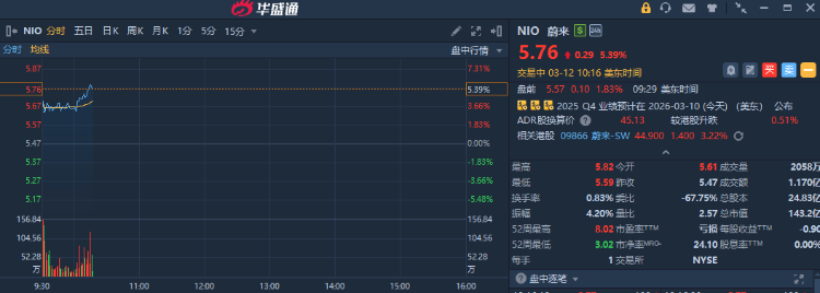 新能源汽车股普遍走强,蔚来盘中大涨超5%,此前瑞银看多新能源车,称油价波动令电动车总持有成本变吸引。