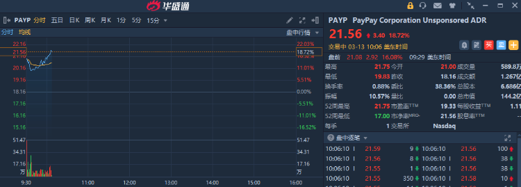 华盛资讯3月13日讯,软银旗下电子支付企业Paypay $PAYP 大涨近19%,公司在美国IPO后继续考虑在东京交易所上市。