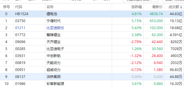 3月16日讯,港股锂电池概念走强,宁德时代、比亚迪股份涨超5%,赣锋锂业涨超2%。