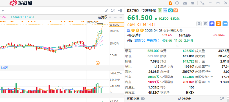 宁德时代(3750)今早升半成创历史新高,绩后已录五连升,月内股价累涨近三成。能源危机阴霾下,来自机器人、数据中心的储能及电池需求增加,多间大行上调宁德H股目标价,两手准备可留意: