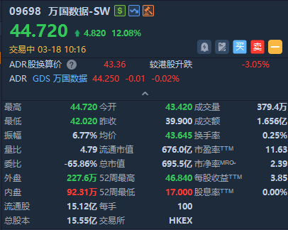 消息面上,万国数据公布2025年业绩,净收入同比增加10.8%至114.323亿元,净利润为9.594亿元,经调整EBITDA同比增长10.8%至54.035亿元。