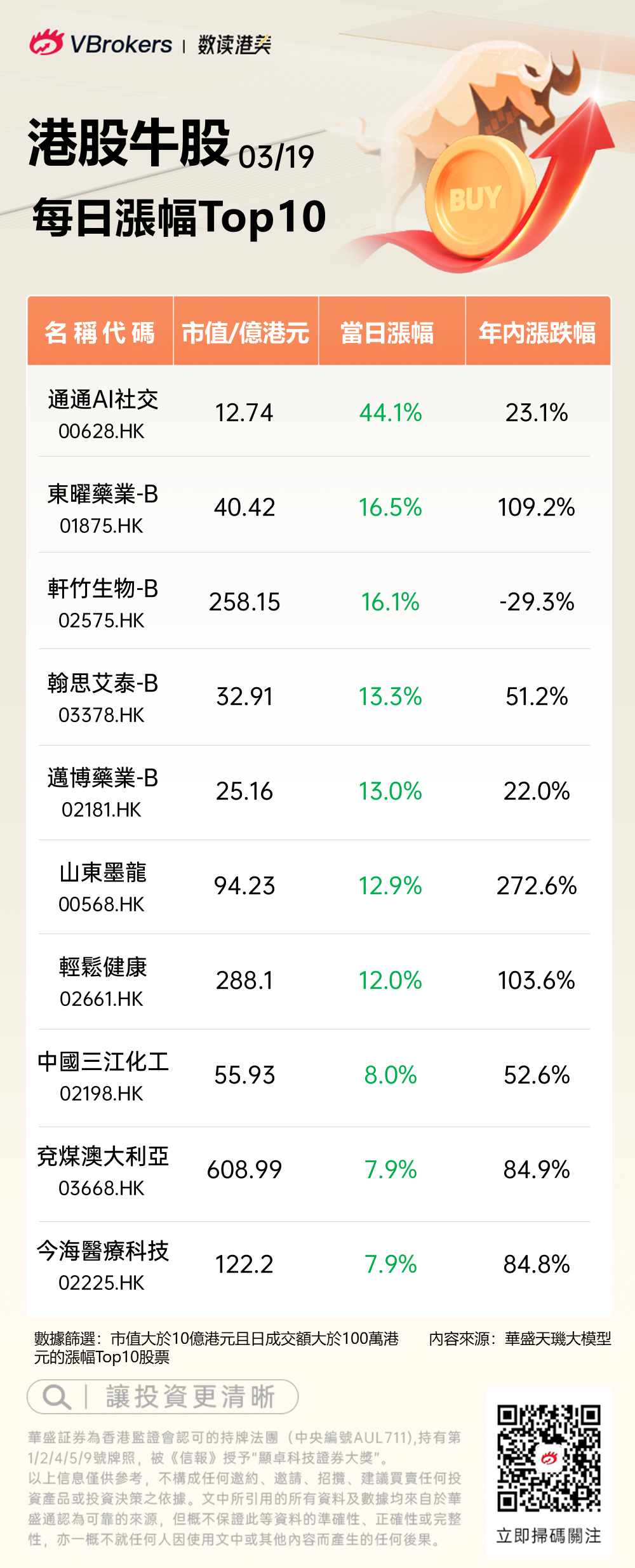 發仔统计了每日港股涨幅Top10,具体名单如下: