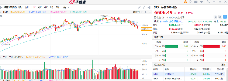 在国际油价持续飙升与中东局势不确定性加剧的背景下,美股市场周四再度承压,标普500指数跌破关键技术支撑位,引发市场对后市进一步下行的担忧。