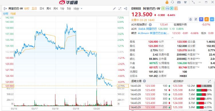 阿里巴巴-W(09988)第三财季经调整利润按年跌67%,远低于市场预期。阿里股价大跌逾6%,见逾半年低位,之后跌势略为回稳。