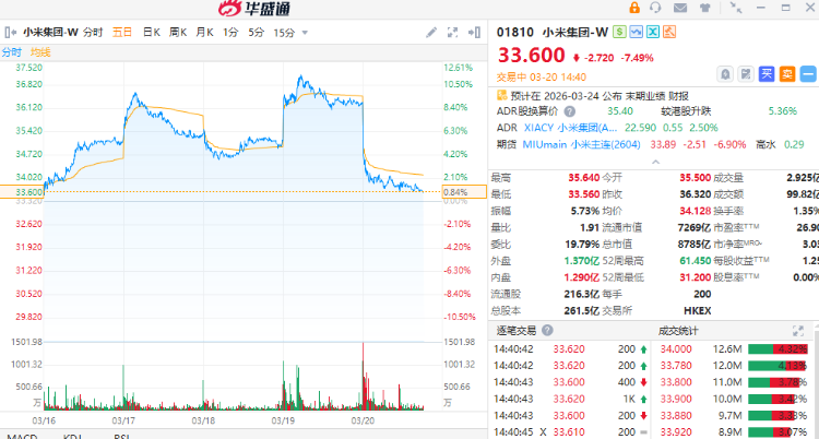 小米集团-W(01810)同样有份拖累大市,集团上日举行新车发布会,当中新版SU7汽车最低配定价较预售价减价万元人民币,创办人雷军指未来三年,小米在AI领域最少投入600亿人民币。