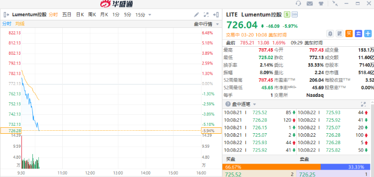 华盛资讯3月20日讯,美股三大指数低开低走,纳指跌幅扩大至超1%;光通信概念股齐下挫, $COHR 、应用光电、Lumentum控股均跌超5%。