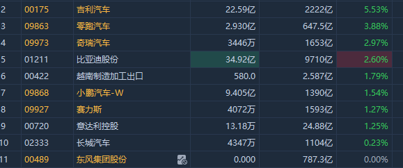 多数新能源车股逆市上涨,截至发稿,吉利汽车涨超5%,零跑汽车涨超3%,比亚迪股份涨超2%,奇瑞汽车涨近3%。