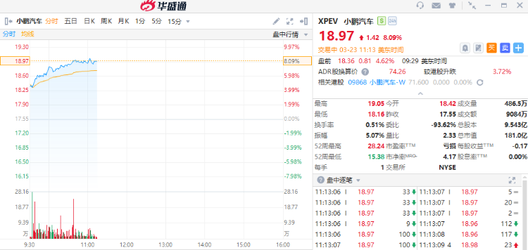 华盛资讯3月23日讯,美股热门中概股全线走高!小鹏汽车大涨超8%,蔚来涨近7%,小马智行涨超4%,台积电涨超4%,阿里巴巴涨近4%,金山云、哔哩哔哩涨超3%,京东、百度涨超1.5%。
